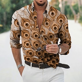 Hombre Pluma Camisa camisa hawaiana Manga Larga Moda Design Casual Exterior Vacaciones Diario Primavera verano Escote Chino Impresión 3D Abotonar Negro Blanco Negro / Verde Amarillo Verde Ejército
