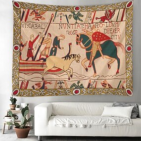 Tapiz medieval de Bayeux tapiz de la Edad Media arte mural decorativo fotografía fondo manta cortina decoración para el hogar dormitorio sala de estar