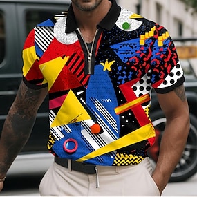 Hombre Geométrico Camisetas polo con cremallera Manga Corta Camisas de polo Camisas con cuello Casual Ropa Deportiva Ropa Cotidiana Impresión 3D Verano Azul Piscina Amarillo Rojo