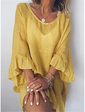 Mujer Mini vestido Lino de algodón sintético Vestido de cambio Vestido informal Básico Moderno Diario Fin de semana Holgado Plano Manga 3/4 Escote en Pico Azul Piscina Amarillo Morado Color Caquí