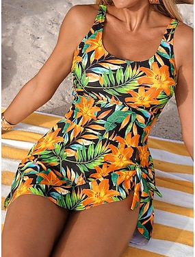 Mujer Bañadores Una pieza Monokini Falda Traje de baño Control de barriga Alta cintura Delgado Espalda al Aire Elegante Vacaciones Floral Graphic Escote en U Sin Mangas Trajes de baño