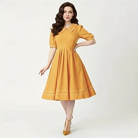 Retro Antiguo 1950s Rockabilly Disfraz de lujo Vestido swing Vestido acampanado Ajuste y acampanado Disfraz Mujer Víspera de Todos los Santos Carnaval Vacaciones Casual Diario Fiesta temática retro