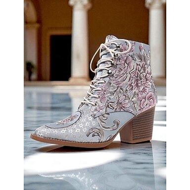 Botas vaqueras con bordado floral para mujer, botines cómodos de tacón de bloque para otoño y salidas informales.