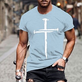 Camiseta gráfica casual de manga corta para hombres con diseño de cruz de fe en color beige