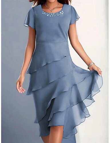 Mujer Vestido Midi Vestido Cóctel Vestido Invitada Boda Vestido de raso Vestido sencillo Elegante Formal Invitado a la boda Fiesta de Cóctel Ajuste regular Manga Corta Cuello Barco Vino Azul Piscina