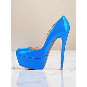Zapatos de tacón de charol negro con punta puntiaguda para mujer con plataforma y tacón de aguja: elegantes tacones altos para fiestas nocturnas.