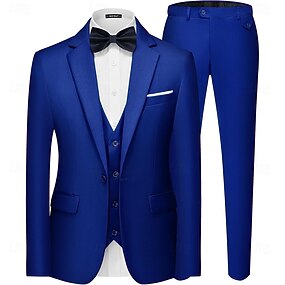 De los hombres Negocio Trajes de negocios Solapa de Pico Negro Azul Real Negocios Color sólido A Medida Juego de 3 piezas Recto 2 botones