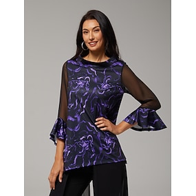 Mujer Camisa casual Abstracto Casual Manga de la linterna Negro 3/4 Mangas Elegante Vacaciones Escote en Pico Verano Temporadas Cruzadas