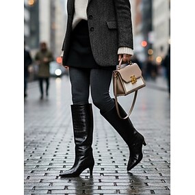 Botas de montar negras hasta la rodilla de piel sintética para mujer: estilo ecuestre elegante para uso informal y formal