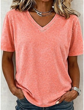Camiseta de mujer de algodón con efecto desgastado, estilo vintage, manga corta, cuello en V, tops regulares, casuales, para el día a día, para salir, azul, morado / azul, negro, morado, naranja,
