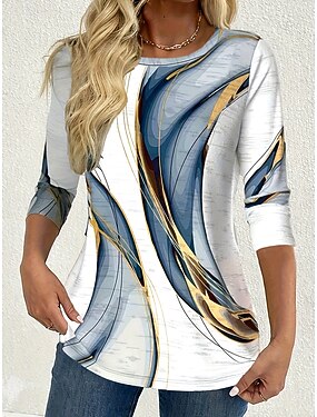 Mujer Camiseta Estampado Asimétrico Graphic Geométrico Vintage Elegante Casual Manga Larga Cuello Barco Tops largos Diario Azul Piscina Blanco Azul polvoriento Gris Verano Primavera