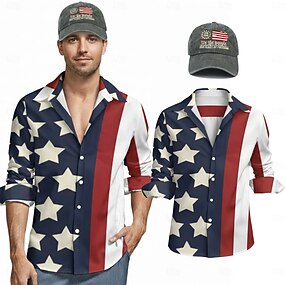 Camisa de manga larga y juego de gorra a juego del 250 aniversario de EE. UU. - Semiquincentenario de la bandera de EE. UU. para el 4 de julio Día de la Independencia para hombres adultos