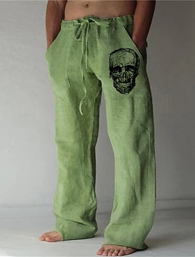 Hombre Vikingo Pantalones Media cintura Casual Exterior Calle Noche Primavera & Otoño Negro Blanco Verde