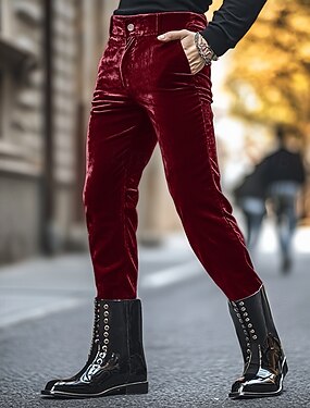 Hombre pantalones de traje Ajustado Pantalones Pantalones casuales Pantalones de terciopelo Bolsillo Plano Comodidad Suave Longitud total Fiesta Diario Discoteca Moda Ropa de calle Negro Rojo