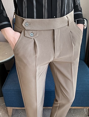 Hombre Graduación pantalones de traje Pantalones Chinos Pantalones de tweed Botones Bolsillo Color sólido Comodidad Formal Fiesta Trabajo Moda Estilo clásico Negro Caqui Microelástico