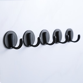Perchero montado en la pared, perchero negro mate de acero inoxidable de alta resistencia para bolsa de toalla, sombrero de ropa, 5 ganchos