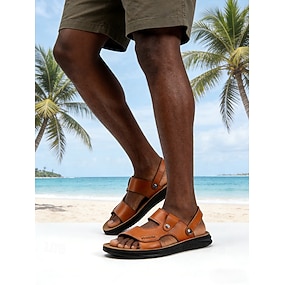 Sandalias de exterior de piel sintética para hombre, informales pero elegantes para tardes de resort y paseos por la playa.