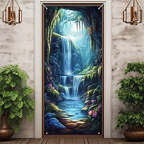 Decoraciones de puertas, cubiertas de puertas, cueva, cascada, tapiz de puerta, cortina de puerta, decoración, telón de fondo, pancarta de puerta interior/exterior para puerta de entrada, casa de