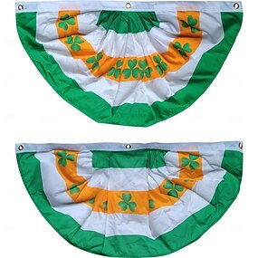 Bandera de abanico del día de San Patricio, diseño de trébol, pancarta semicircular de festival, decoración de fiesta irlandesa, bandera de trébol verde para la celebración del día de San Patricio.