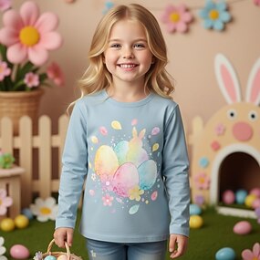 Semana Santa Chica 3D Graphic Conejo Camiseta Manga Larga Impresión 3D Primavera Otoño Deportes Moda Ropa de calle Niños 4-12 años Cuello Barco Casual Diario Exterior Ajuste regular