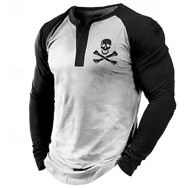 Hombre Cráneos Estampados Henley Shirt camisa fresca Camisa de manga larga Manga Larga Estampado en caliente Design Básico Contemporáneo moderno Vacaciones Calle Noche Primavera & Otoño Negro Blanco