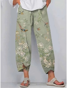 Mujer Lino de algodón sintético Chinos Pantalones de verano Pantalones Activo Casual / Diario Largo Alta cintura Floral Bolsillo Cintura elástica Estampado Transpirabilidad Suave Microelástico