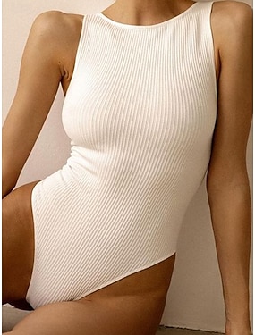 Mujer Bañadores Una pieza Traje de baño Vacaciones Ropa de playa Plano Escote Redondo Sin Mangas Trajes de baño