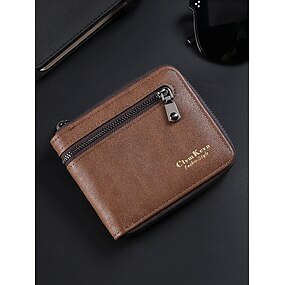 Cartera con cremallera de piel sintética para hombre: diseño delgado y plegable con múltiples ranuras para tarjetas y bolsillo para monedas, monedero elegante y duradero para negocios, viajes y uso diario.