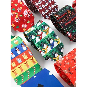 Corbata navideña de poliéster para hombre con estampados de Papá Noel, muñeco de nieve y motivos navideños: pajarita festiva y ajustable para fiestas y eventos navideños.