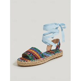 Alpargatas planas de mujer con estampado colorido y diseño con cordones: calzado cómodo y elegante para las vacaciones de verano en la playa o en la isla.