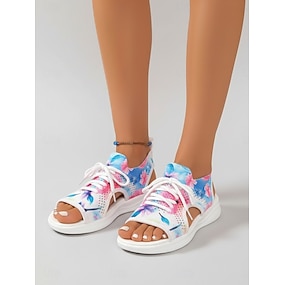 Sandalias deportivas ligeras azules para mujer: sandalias de verano transpirables con estampado floral para caminar, ideales para viajes, actividades al aire libre y uso diario.