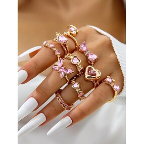 Juego de anillos de aleación con forma de corazón y mariposa para mujer, dorado y plateado, varias piezas, perfecto para regalar en San Valentín o para uso diario.
