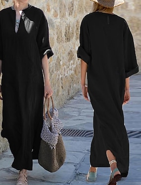 Mujer Vestido maxi Lino de algodón sintético Vestido de Camisa Vestido informal Vestido de verano de algodón Moda Básico Moderno Diario Exterior Vacaciones Holgado Plano Media Manga Escote en Pico