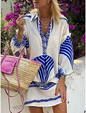 Mujer Mini vestido Vestido de verano Vestido bohemio Vintage Étnico Mangas de dormán Diario Cita Ajuste regular Graphic Media Manga Escote en Pico Negro Azul Piscina Verde Trébol Albaricoque Verano