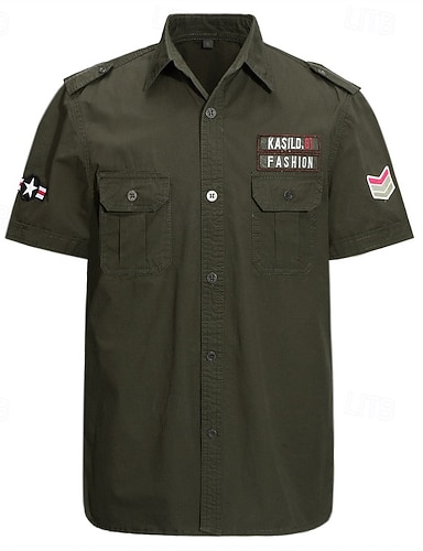 Hombre camisa cargo Camisa para senderismo Camisa del ejército Manga Corta Cuello Vuelto Camiseta Al aire libre Ligero Transpirable Verano Primavera Algodón Negro Verde Ejército Caqui Caza Pesca