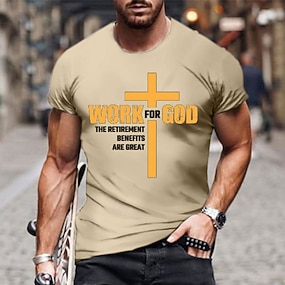 Camiseta gráfica casual de manga corta para hombres con diseño de cruz de fe en color beige