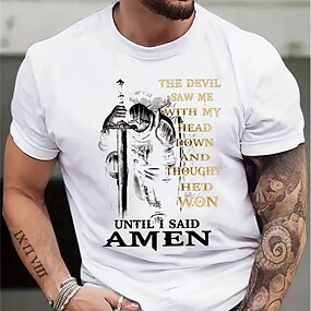 Camiseta gráfica inspiradora para hombres de caballero 'El diablo me vio hasta que dije Amén' Diseño de fe