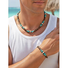 Conjunto de collar y pulsera de cuentas de madera estilo bohemio para hombre, material de madera natural, multicolor, accesorios para vacaciones en la playa y uso diario informal.