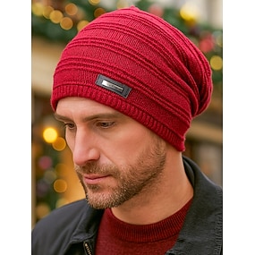 Gorros de punto para hombre para Navidad, acrílico suave y piel sintética, varios colores para la moda invernal.