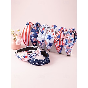 Diadema bohemia de poliéster para mujer, con varios estampados de la bandera de EE. UU., accesorio ligero para el cabello de verano, perfecto para el 250 aniversario de EE. UU., el Día de la Independencia y para uso casual diario.