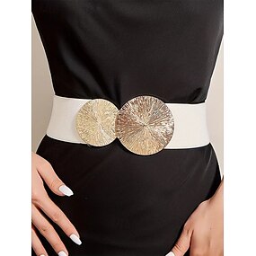 Cinturón elástico para mujer con hebilla circular dorada: cinturón elástico ancho y moderno para vestidos, ocasiones informales y formales