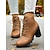 Botas de media caña de ante sintético marrón oscuro para mujer con tacón de bloque: botas de estilo vintage para otoño e invierno y uso diario.
