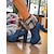Botas altas de ante para mujer con tacón de cuña y tira con hebilla - botas casuales de estilo bohemio en azul denim