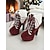 Botines de tacón alto con cordones burdeos para mujer: botines de plataforma estilo brogue vintage con panel de lona para fiestas y moda de otoño.