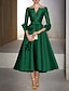 Corte A Vestido Midi Vestidos de coctel Vestidos de fiesta Elegante Vintage Manga 3/4 Escote Cuadrado Formal Boda Bolsillo Satén con Lazo(s) Bolsillo 2025
