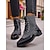 Botines negros de piel sintética con cordones y tacón grueso para mujer: botas de nieve cálidas para el invierno, ideales para mercados navideños, ropa de calle informal y moderna.