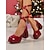 Zapatos de tacón cuadrado de charol rojo para mujer con tiras de cinta de raso, diseño de plataforma elegante, perfectos para fiestas navideñas, eventos festivos y ocasiones festivas.