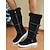 Botas de piel sintética para mujer de media caña con puño de punto y correas con doble hebilla: calzado de invierno cómodo y elegante