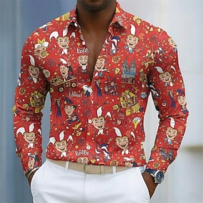 Mardi Gras Hombre Máscara Carnaval Camisa de raso Camisa para Vestido Abotonar la camisa Manga Larga Moda informal Festivos Verano Primavera Cuello Vuelto Camisas con cuello Impresión 3D Morado