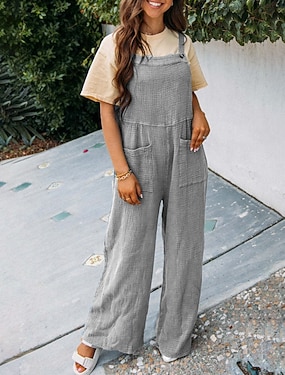 Mujer Normal Mono Activo Color sólido Sin Mangas Perneras anchas Escote en U Bolsillo Botones Diario Vacaciones Holgado Negro Vino Marrón claro Verano